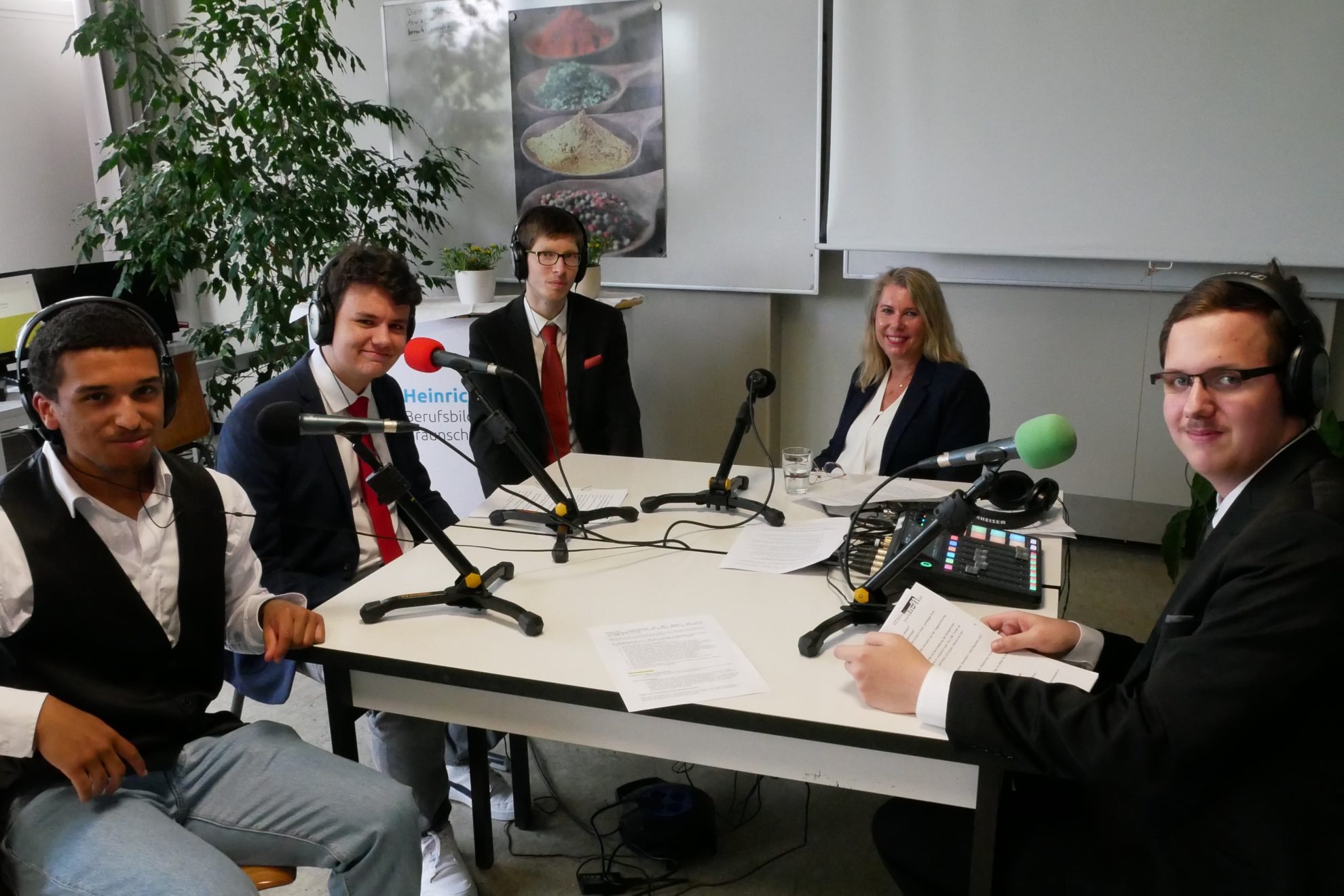 Mit Mikrofon und Kopfhörer durch den Landtag - Schüler der BBS Heinrich-Büssing-Schule gestalten Politikpodcast und Webradio-Sendung